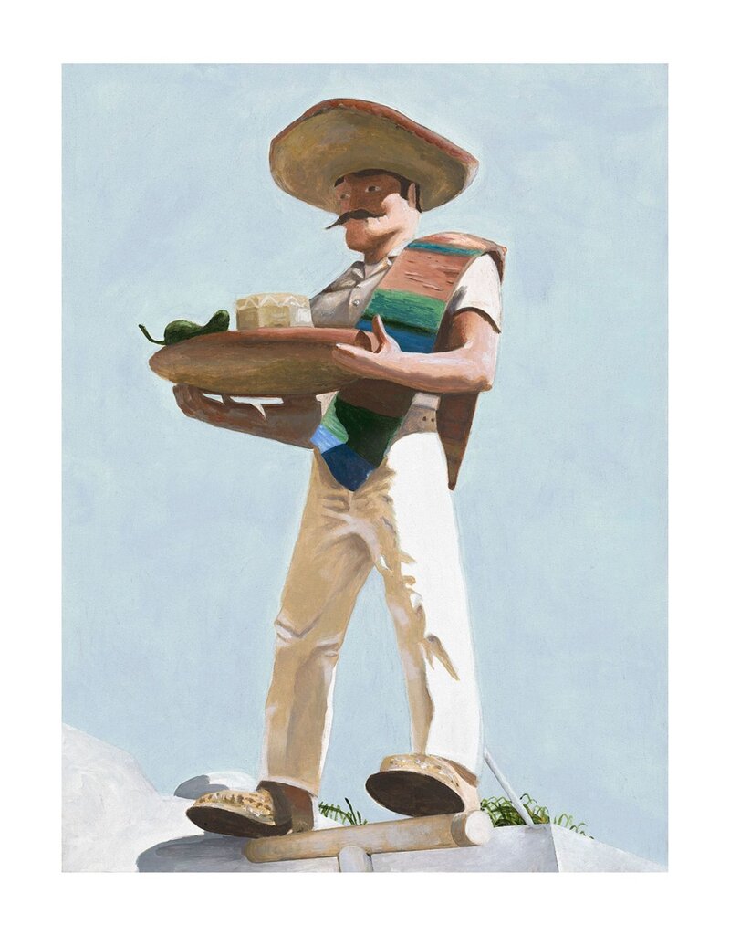 Created in the 1960s El Salsero, or “La Salsa Man” is one of thousands of fiberglass sculptures found along the highways of the U.S. called “Muffler Men” Originally made for a Frosty Freeze in Malibu, he was later changed into the statue we know today when the restaurant was sold in 1988 to La Salsa Mexican Restaurant. Artist Bob “Daddio” Wade was hired to change him from the soda jerk, into the Salsa Man by taking the Hamburger he was holding and cutting it in half, using half for the sombrero, and the other half for the tray of Mexican food..
